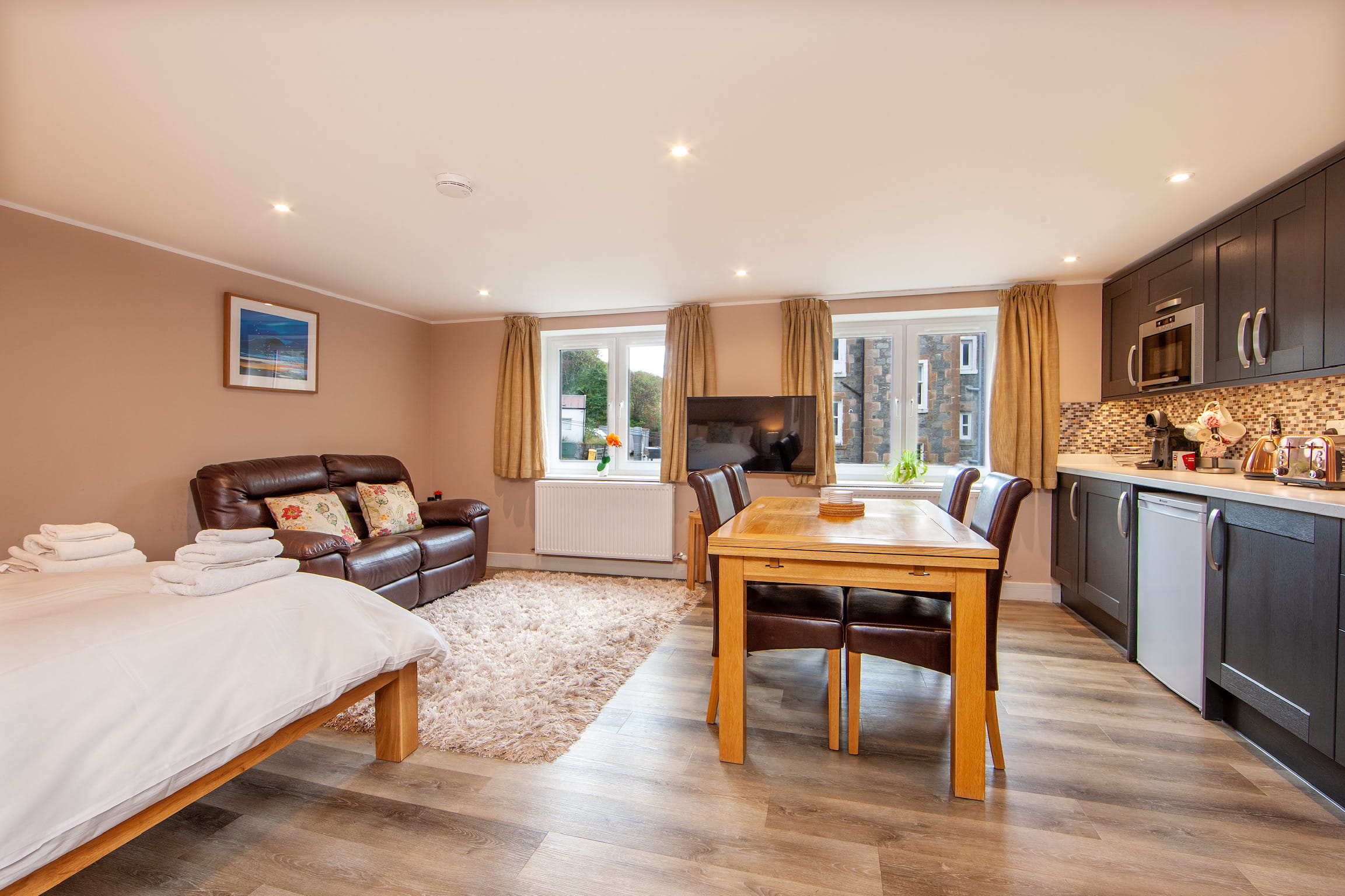 More than a hotel room: this fully equipped apartment is designed for longer stays. Perfect for one or two guests, it combines a quiet side-street location with easy access to Oban’s main street, offering the comforts of home in the heart of town.